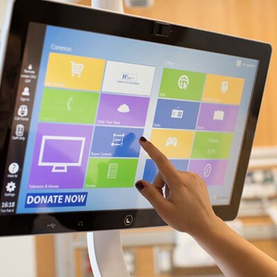 Enhanced Benefits: Brand new terminals and arms will be installed at every inpatient bed. The touch-screen terminals are equipped to provide new / additional Patient Connectivity Services including television programming, internet, internet radio, access to social media and streaming services, video calling, and iMD health library - all in one, modern unit attached to an easily mobile swing arm near the bedside; and Rental service capability provided directly at the bedside through the terminal or by telephone.